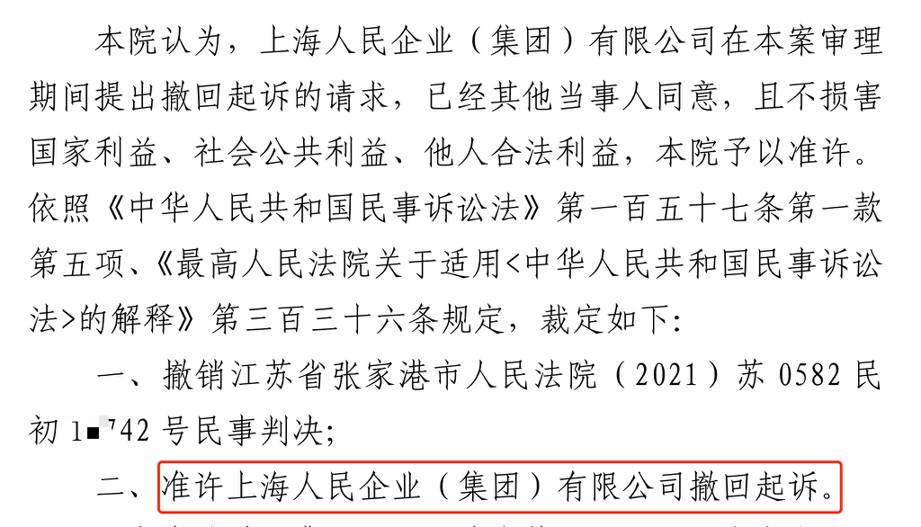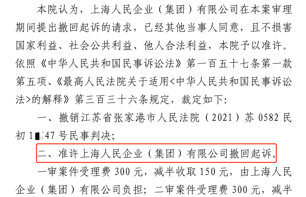 银川胜诉佳讯 | 人民企业系列案苏州六案上海人民公司撤诉